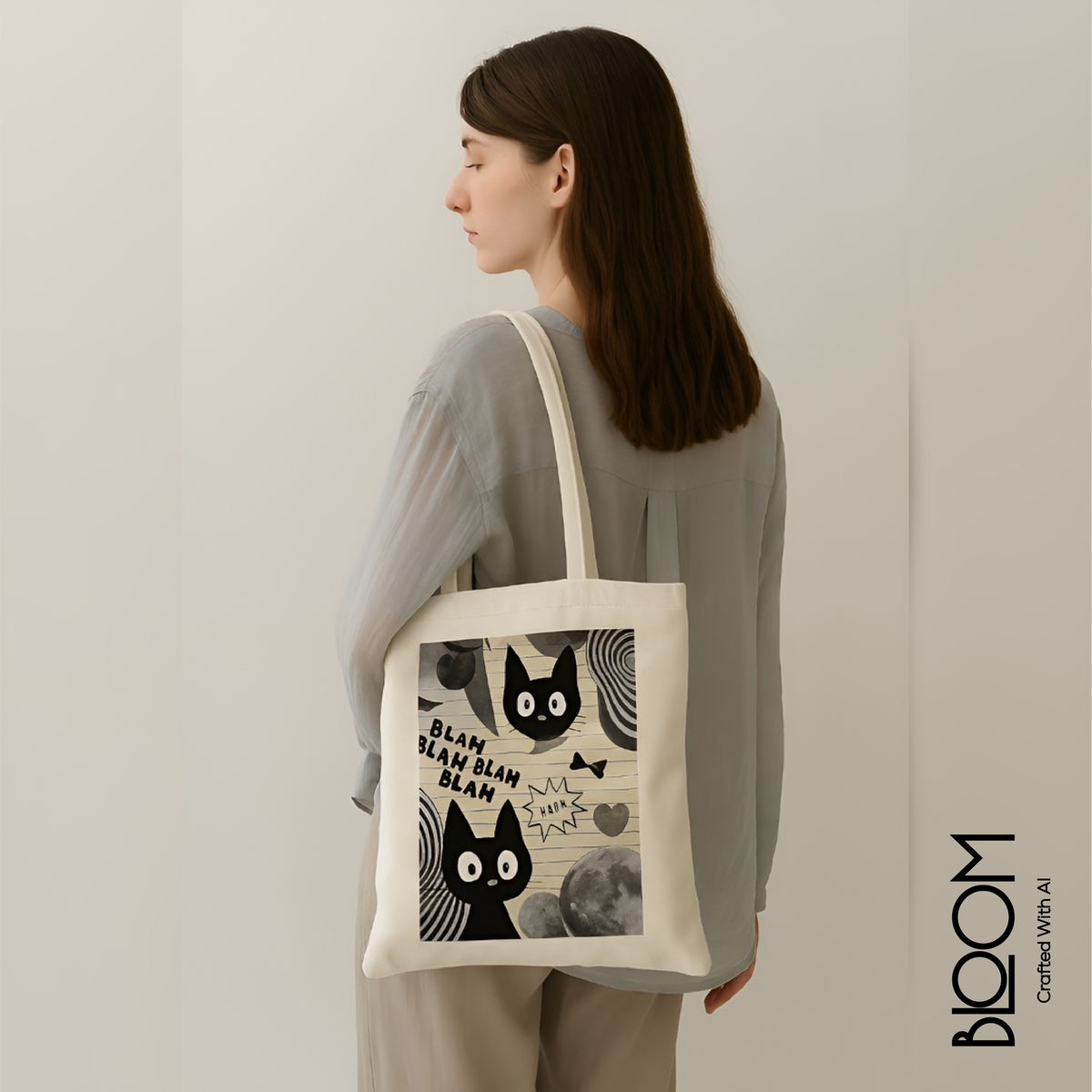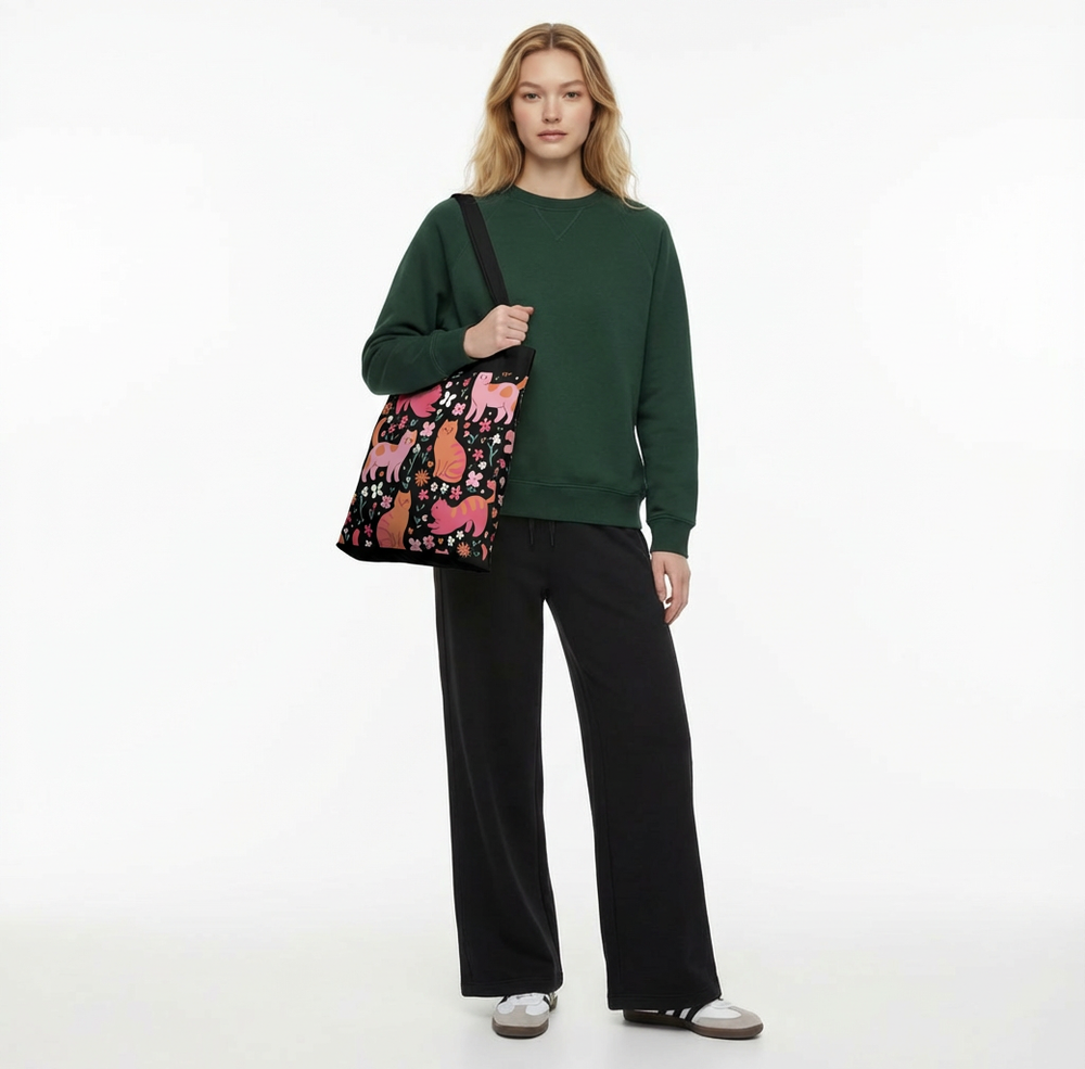 "Last month I boughtWhispers of the Night (black) and more two bags in deferent motifs. My two Grandchildren, ,my daughter and myself are very happy to have your Unique products! We are Cat lover. So, we are very happy to get your Cat motifs bags! . Only thing is, if you improve the handle little bit long. It will be more easy to carry on the shoulder. Many many thanks and well wishes..Stay well."